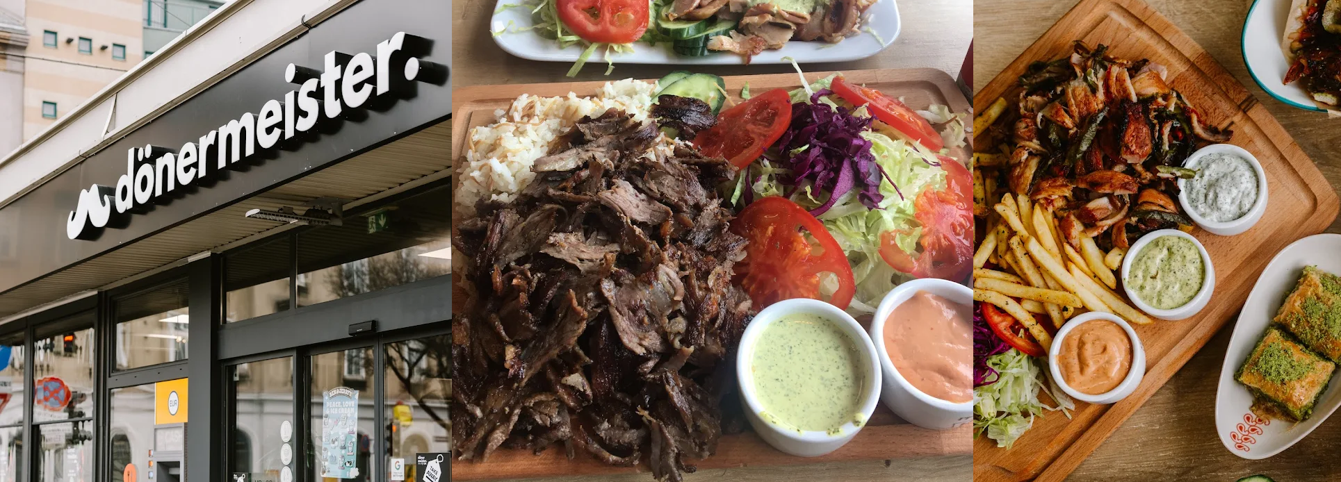 Der Dönermeister bietet seinen Gästen ein umfangreiches Speisekartenangebot. Neben den klassischen Döner-Gerichten wie Schawarma, Kebap und Lahmajoun werden auch Spezialitäten wie Falafel, Halloumi-Burger und Gemüsegerichte serviert. Dazu gibt es eine große Auswahl an süßen und herzhaften Beilagen, Salaten und Getränken.